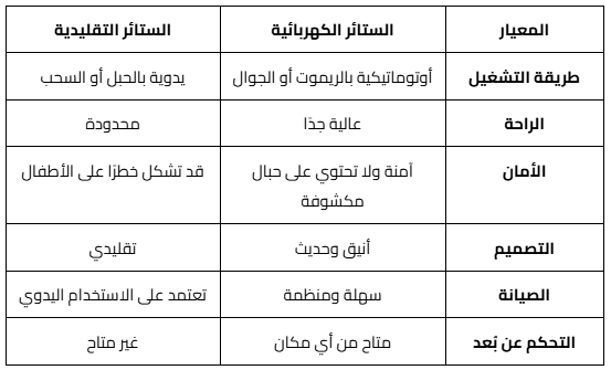 مقارنة بين الستائر الكهربائية والستائر التقليدية
